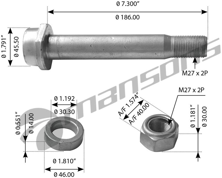 ![]() | MANSONS | 100031 | Болт рессоры 27х186х2 Schmitz |